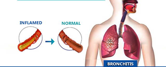Bronchitis is the inflammation of the bronchi, the airways that branch out from the trachea (wind pipe) into the lungs. The inflammation can be caused by viruses, bacteria and other particles which irritate the bronchi.The symptoms include persistent cough lasting for more than 5 days, wheezing, fatigue, shortness of breath, chest discomfort, headache, fever and chills. Bronchitis is of two types: acute and chronic. Acute bronchitis is characterized by cough that lasts around three weeks. Chronic bronchitis is defined by cough that lasts for three months or more per year for at least two years.