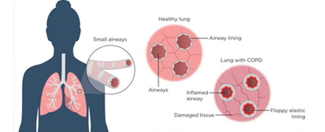 Chronic obstructive pulmonary disease (COPD) is a group of lung conditions that make airflow in and out of the lungs difficult due to narrowing of the airways (bronchi). In COPD, the bronchi and alveolar lose their shape and elasticity. This results in less air getting in and out of the lungs.